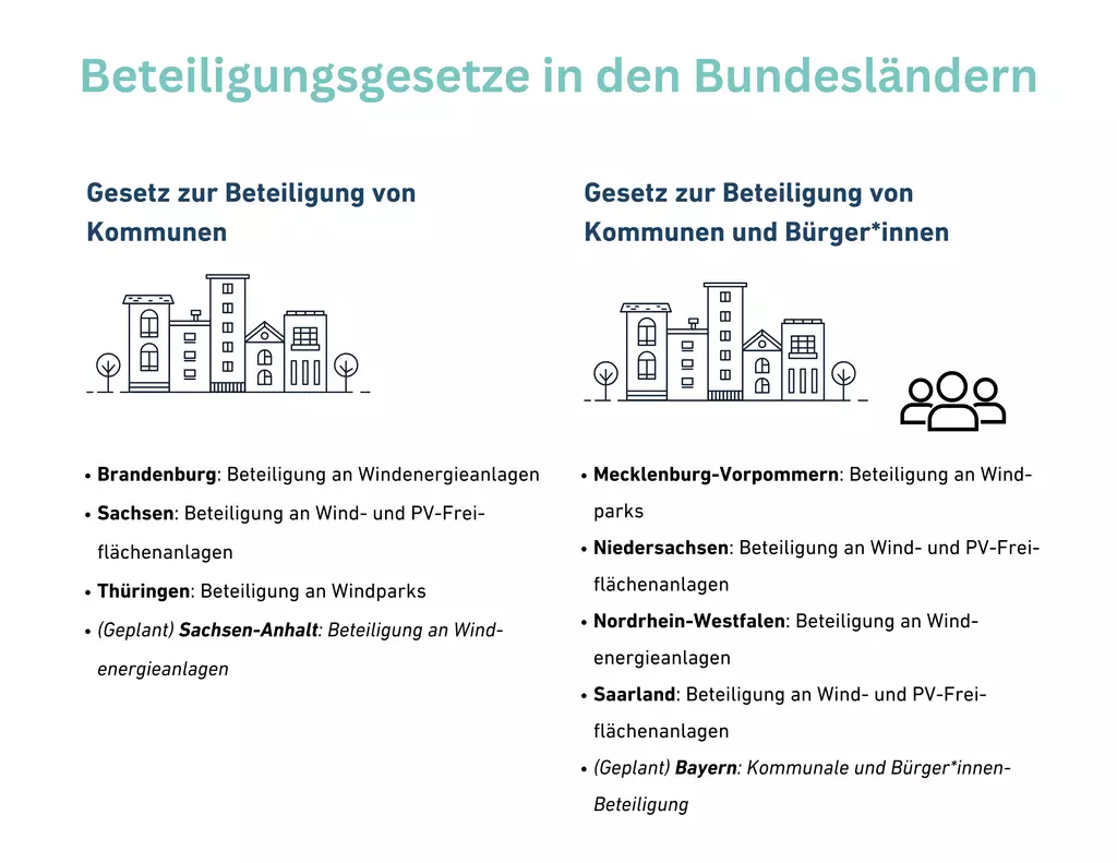 Innerhalb der bundesweiten Vorgaben kann jedes Bundesland eigene Klimaschutzziele definieren und Maßnahmen zur Beschleunigung der Energiewende entwickeln. In einigen Bundesländern ist zum Beispiel die kommunale Wärmeplanung schon früher verpflichtend.