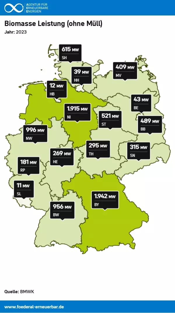 36 Terrawattstunden Stromwurden 2024 durch Biomasse erzeugt. Aufgrund ihrer Flexibilität spielt Biomasse eine besondere Rolle im Strommix.